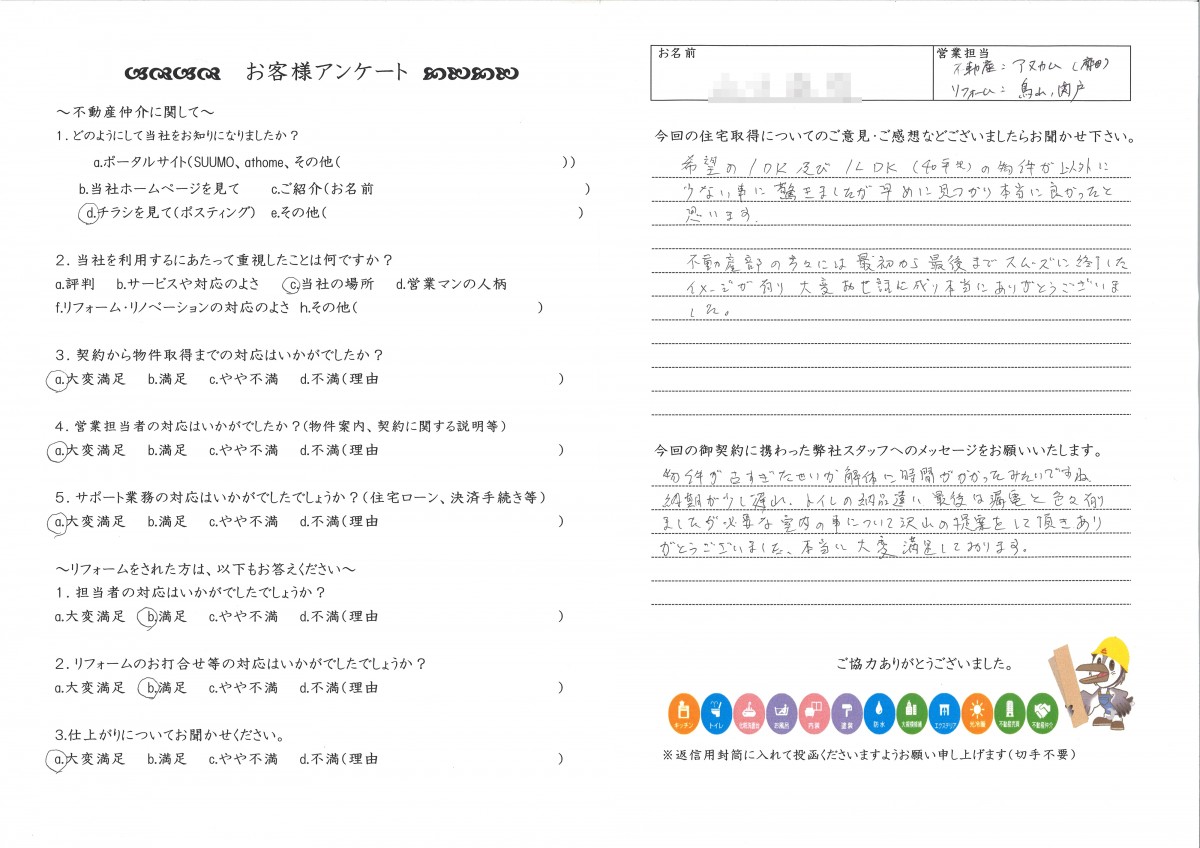 希望の1LDKが見つかり本当に良かった (Y様宅)