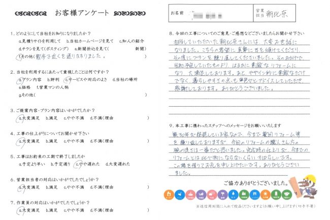 はるかに素敵なリフォームになり大満足しております。