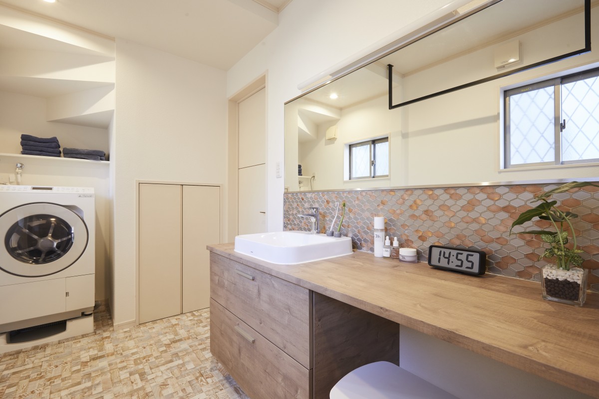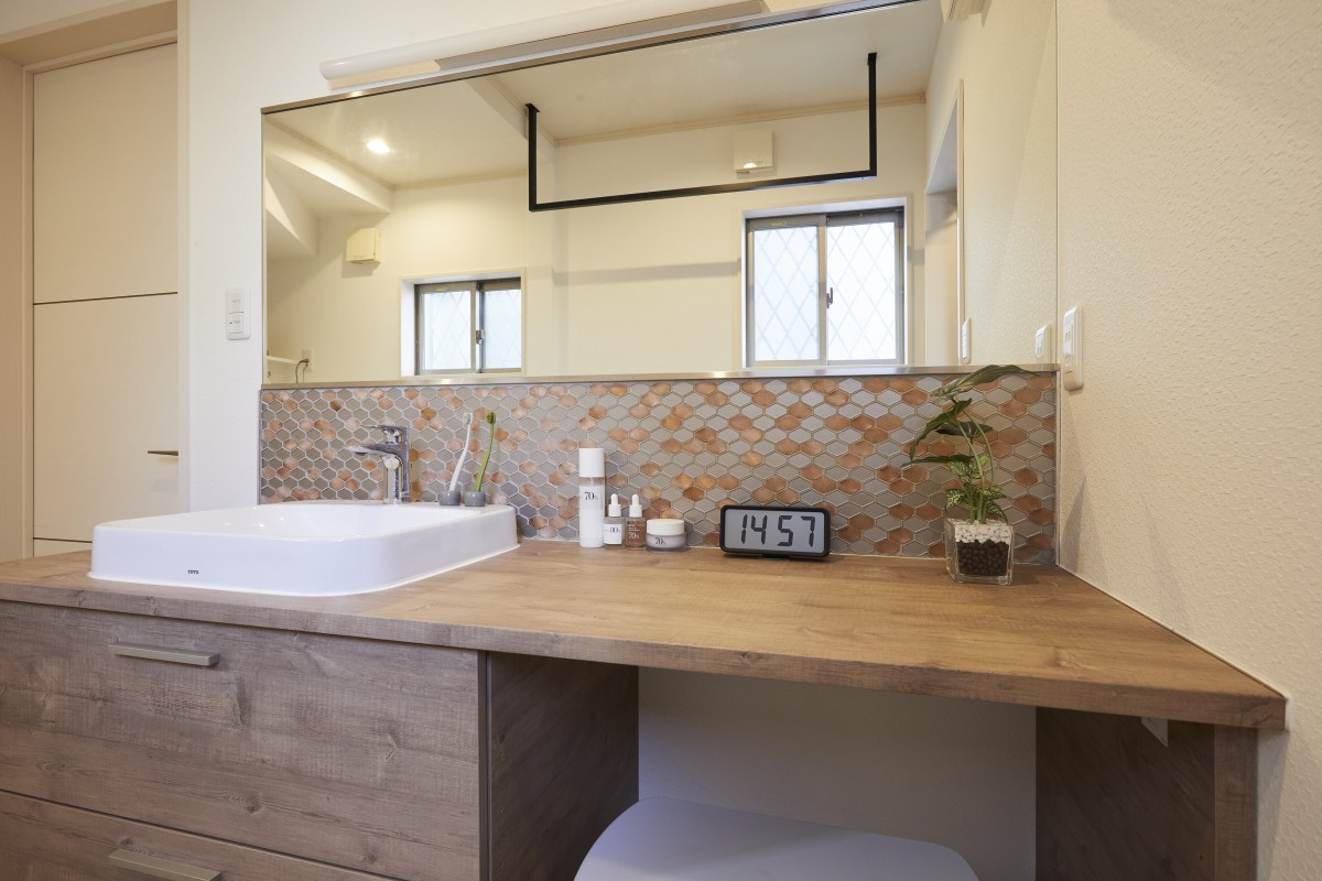 忙しい朝、二人で使用できるようにカウンター洗面台を選択されました。